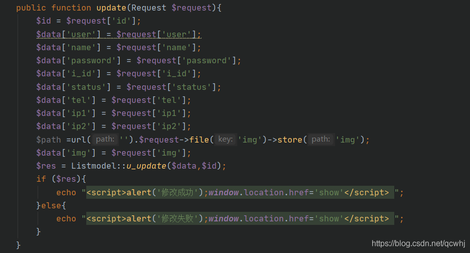 echo "<script>alert('添加成功');window.location.href='show'</script> ";