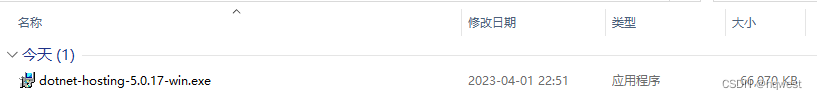 部署asp.net core web api项目需要安装环境,IIS默认是不支持的,支持环境需要安装net core运行时: dotnet-hosting-5.0.17-win.exe,原因就是前面概述中讲的,.net core项目不是由iis工作进程(w3wp.exe)托管,需要先下载dotnet-hosting-5.0.17-win.exe