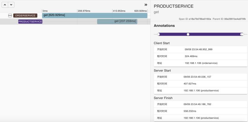 sr - cs = 请求在网络上的耗时 ss - sr = 服务端处理请求的耗时 cr - ss = 回应在网络上的耗时 cr - cs = 一次调用的整体耗时