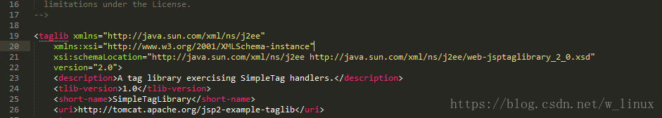 //将jsp2-example-taglib.tld中头部复制到创建的xml文件中