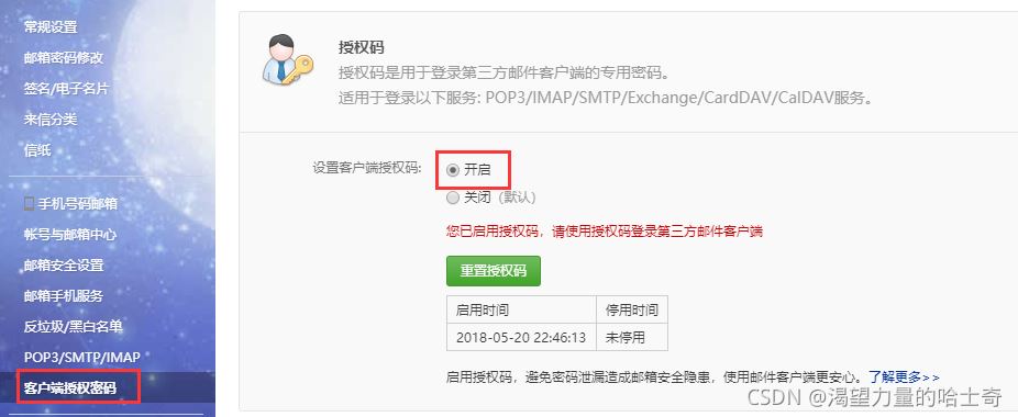 其实不然,这里的“password”输入的并不是密码,而是一种授权码,专门作用于登陆 第三方邮件客户端授权的专用密码,适用于登录以下服务: POP3/IMAP/SMTP/Exchange/CardDAV/CalDAV服务。