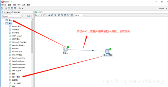 (4)分别在输入和输出中拉出表输入和插入/更新