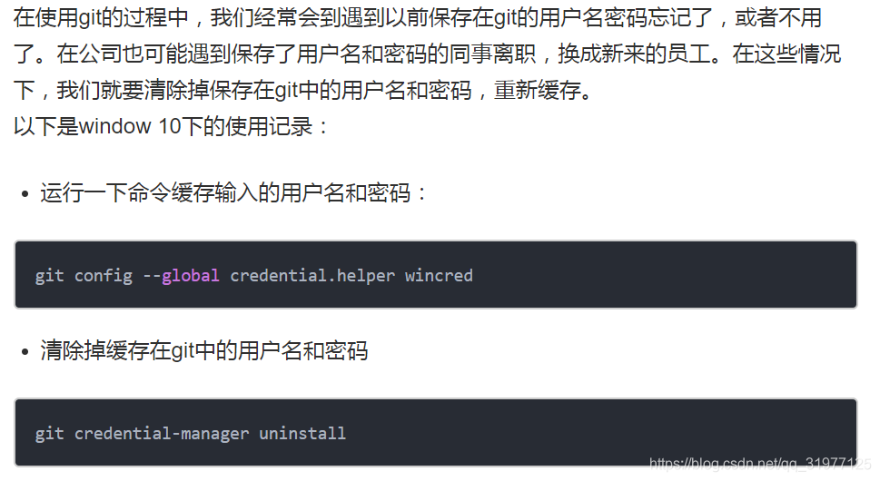 初步分析,是由于git缓存了账号信息,在不指定账号的时候使用默认的账号去执行pull操作。所以沿着清缓存的方向找到一篇文章(见截图):
