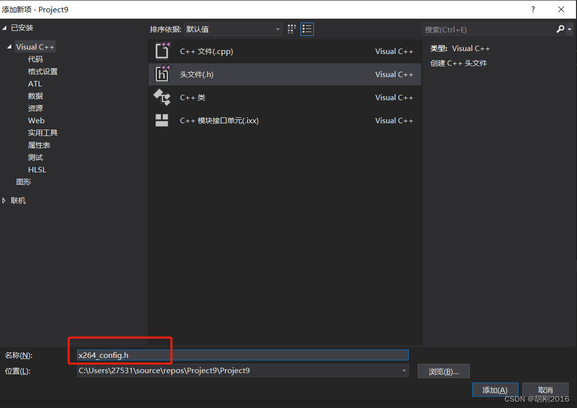 (注意:这里的头文件要手动创建,不能直接复制,否则 VS2019 识别不出来)