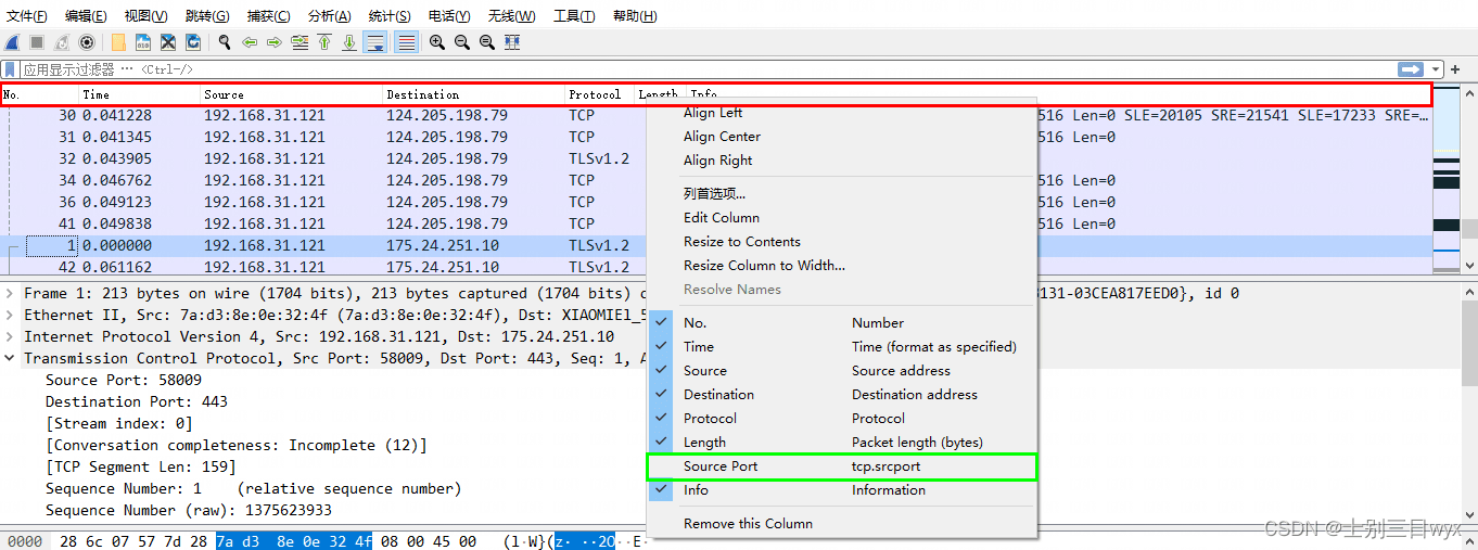 数据包列表是最常用的模块之一,列表中有一些默认显示的列,我们可以添加、删除、修改显示的列。