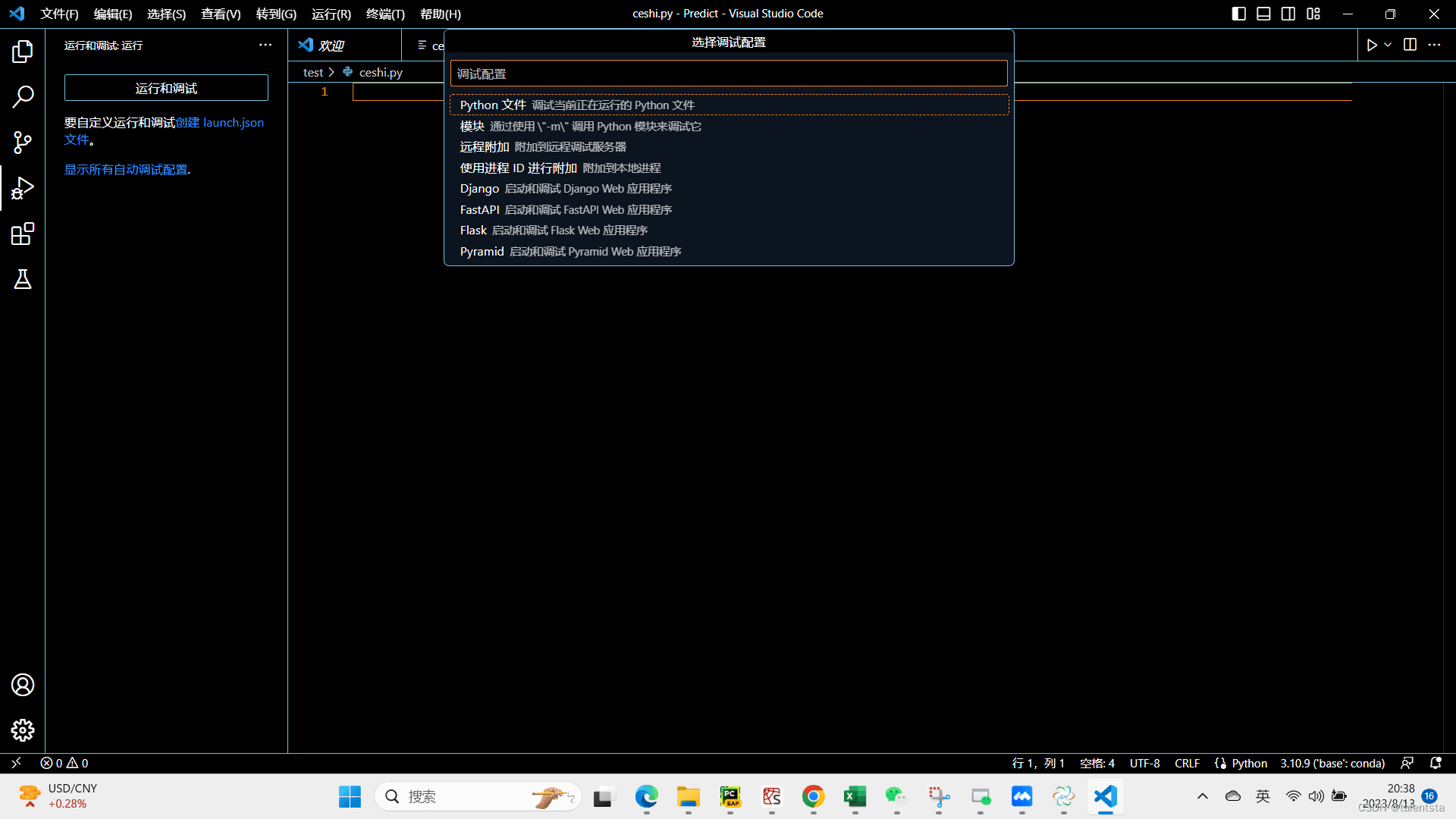 第四个图标这里是我们可以自己决定运行结果显示在哪里,点击选择 launch.json 文件,可选择在哪里运行,选择进行调试。