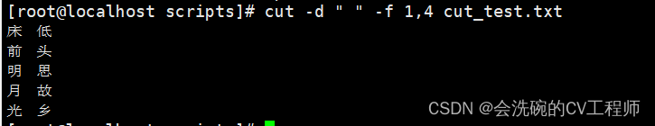 cut 命令从文件的每行剪切字节、字符和字段并将这些字节、字符和字段输出