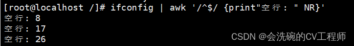 ifconfig | awk '/^$/ {print"空行: " NR}'