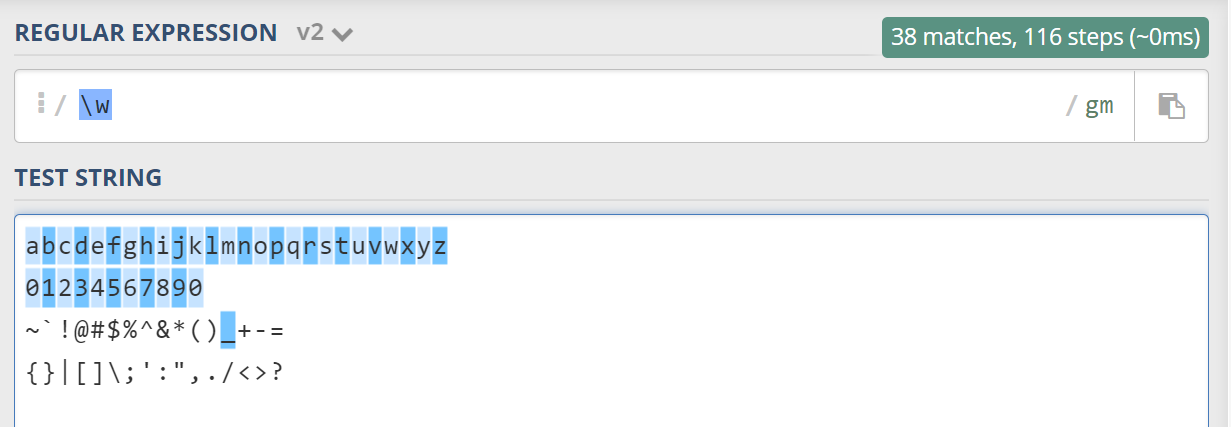 \w字母数字下划线通配符,可以匹配到任意的字母数字下划线
