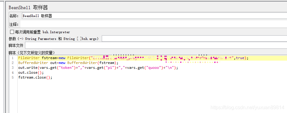 若是请求之后,提取变量,写文件使用的是beanshell后置处理程序